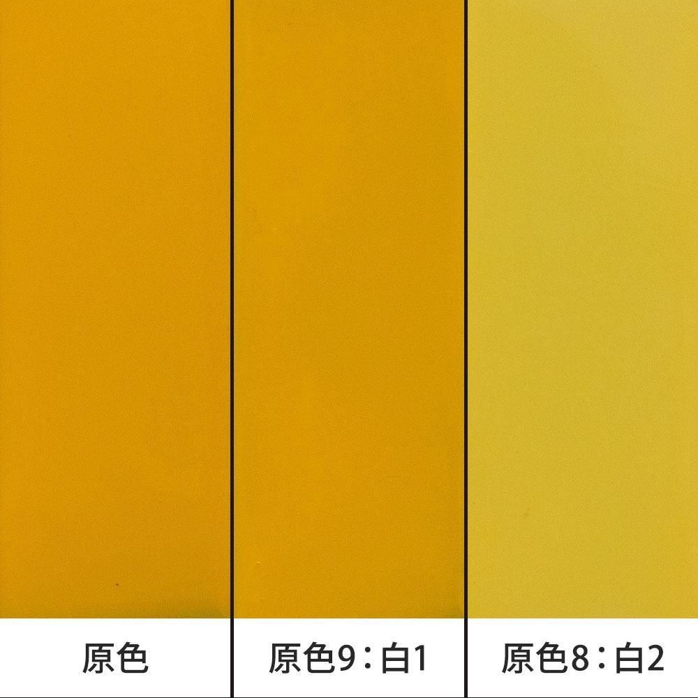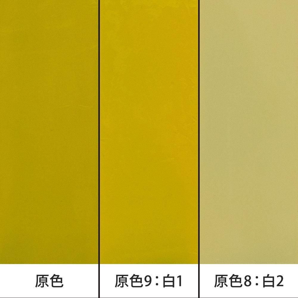 同じ色名でも、配合されている顔料の種類によって、色足(青みや黄みなどの色の微妙なニュアンス)が異なるため、原色を混ぜ合わせて希望色を作る調色においては、色足を把握しておくことが重要です。